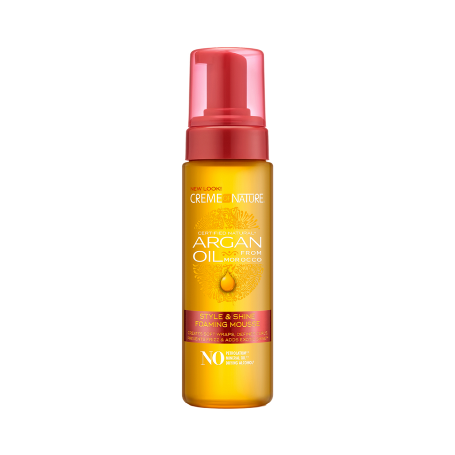 Lightweight foaming mousse infused with 100% organic argan oil from Morocco to define curls, add long-lasting hold, and leave hair soft with body. Helps detangle, soften, and boost shine, while optimizing moisture balance and helping prevent frizz—ideal for wraps, twist-outs, roller sets, and everyday styling.