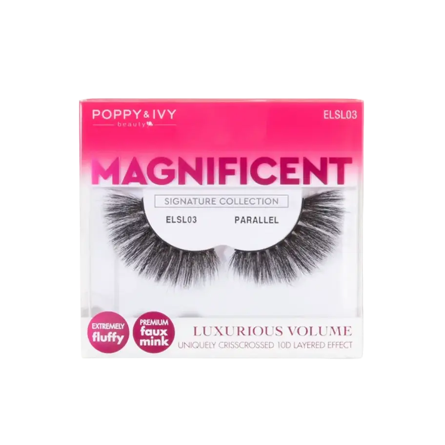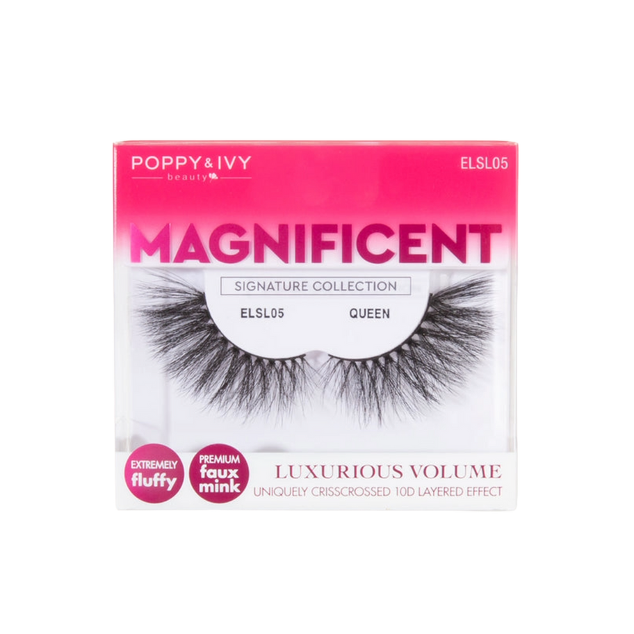 Premium faux mink strip lashes with 10D multi-layer, crisscross fibers for a fluffy, ultra-voluminous look without feeling heavy. Designed with a flexible band that blends into the lash line for a more natural-looking glam finish.